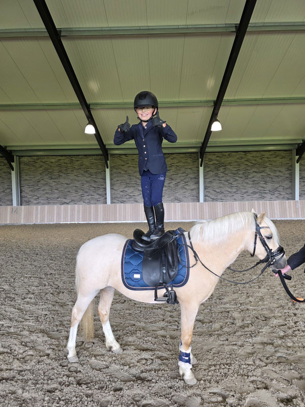 Silva is een prachtige 3-jarige ruin met een lief, aanhankelijk en zachtaardig karakter. Hij is een echte blikvanger en een bijzonder brave kinderpony die al fijn onder het zadel loopt, ook met jonge kindjes. Een sprongetje is hij ook al gewend!